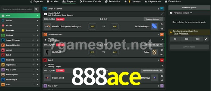 O 888ace oferece uma grande seleção de opções de apostas em e-sports com probabilidades competitivas